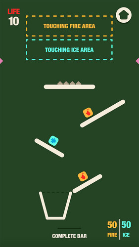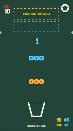 Fill a glass with colourful balls, avoiding thorns and destroying piles of fire and ice blocks to advance to the goal.